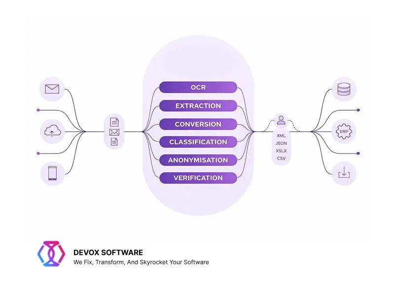 At Devox Software, we modernize, build, and innovate your business processes and tech for tangible business results, particularly by leveraging intelligent data extraction software to enhance data extraction and processing compared to traditional OCR methods. If you’re looking for low-investment but efficient business solutions, we’re glad to share.