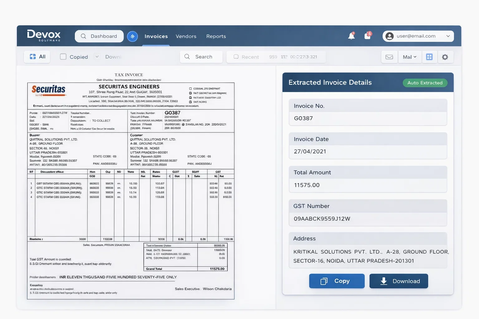 - AI identifies important fields such as invoice number, supplier name, date, line items, and total amount, even with variations in wording like “Invoice #” instead of “Bill No.”