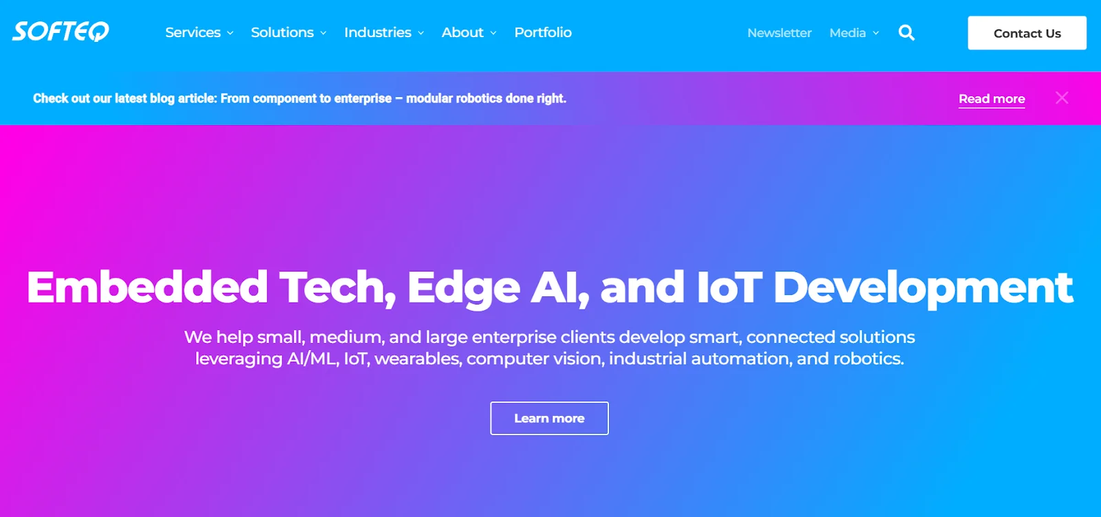 Softeq is an expert in hardware-adjacent systems, IoT, and embedded software development. Their work frequently focuses on cloud integration for equipment makers, industrial networking, and device-level custom software development for manufacturing industry.
